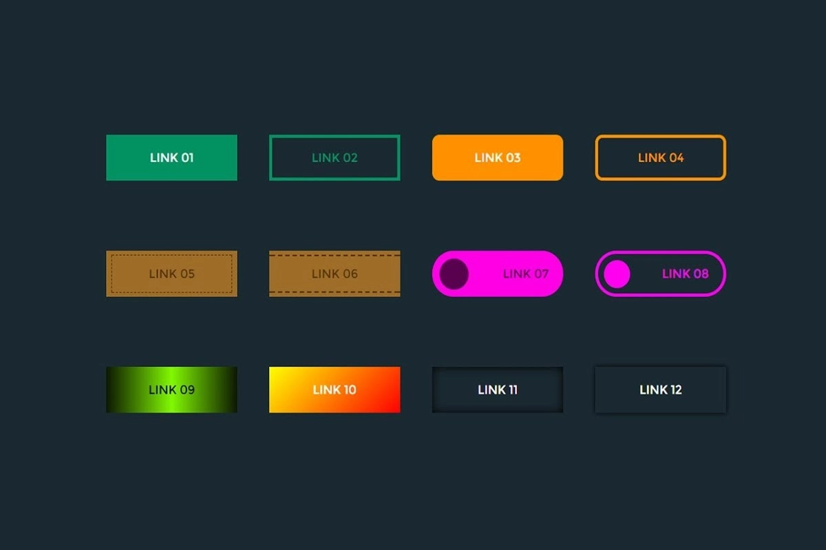 ساختارهای متفاوتی از هاور دکمه را در زیر مشاهده می کنید که با استفاده از این هاورهای استاندارد می توانید جذابیت بیشتری به وب سایت خود بدهید.